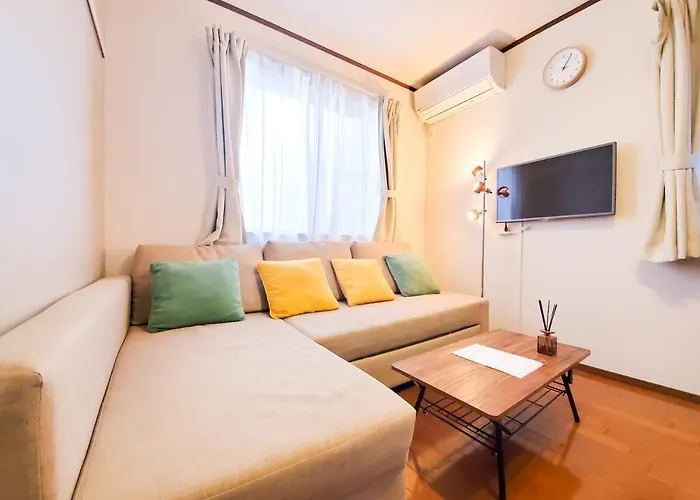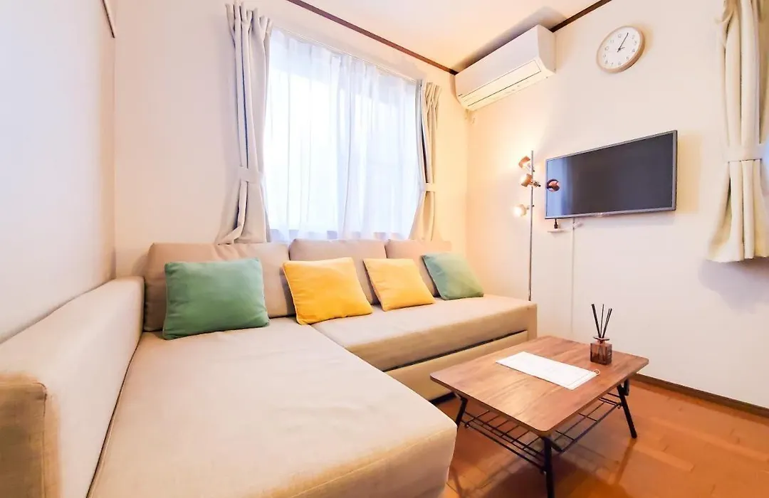 Sugekari Parkから徒歩で20分以内で行ける渋谷区地区の35m²のNestay Suite Tokyo Shibuyaアパートは、8人の顧客を収容します。 バルコニー付きの2ベッドルームアパートメントにも器具でいっぱいの台所があります。